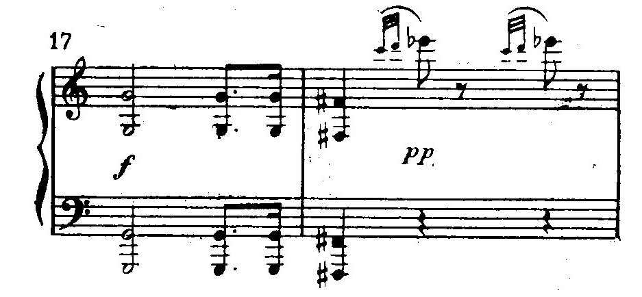 А дальше обращают внимание остро динамические синкопы и бурный рокот уменьшенного септаккорда в басу (тт. 79—80).