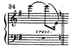 Кстати сказать, А. Рубинштейн обратил внимание на мелкую, но характерную особенность в конце первой части Allegretto. Неосуществимо требование Бетховена сделать crescendo на выдержанной ноте фортепиано: