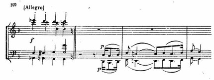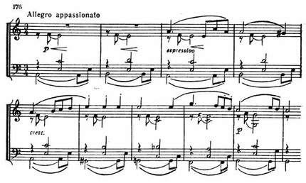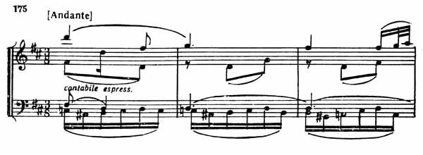 Но вот появляется как будто совершенно новая, а в действительности выросшая из предыдущего материала тема речитативного характера (пример 169).