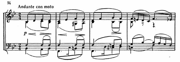 Тема главной партии Andante носит задумчивый характер (пример 14).
