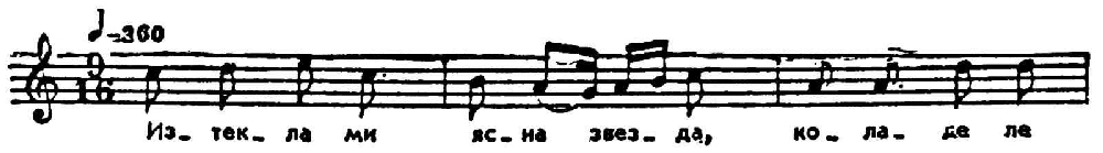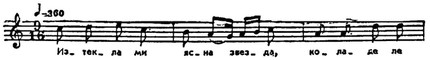 Нар. Б. м. сохранила самобытные черты в отношении образности, мелодики, ладово-гармонич. строя и метроритма. Для неё характерна славянская напевность и в то же время богатая орнаментика, в основе мн. мелодий — разл. натуральные лады (эолийский, дорийский, фригийский и др. лады с ув. секундой). Одна из особенностей нар. Б. м. — метрич. разнообразие. Наряду с простыми размерами 2/4, ¾, 4/4, 3/8 и т. д. часто встречаются 5/8, 7/8, 8/8, 9/8, 10/16, 12/16, 14/16; встречаются и более сложные комбинации подобных размеров; эти размеры являются основой различных танцев. Б. Барток называет их «болгарские ритмы». Часто в одной и той же песне несколько неравнодольных размеров; мн. песни не имеют постоянного размера. В строении муз. фраз и предложений наблюдается разл. сочетание симметричных и несимметричных структур. Ладовое строение песен (за исключением нек-рых городских, «возрожденских») основано на старинных звукорядах; их диапазон обычно в пределах тетрахорда. В протяжных песнях (гл. обр. историч.), не имеющих равномерного тактового деления, существенную роль играет акцентировка словесного текста, придающего песням характер речитатива. Болг. нар. песни преим. одноголосны; многоголосие (двухголосие и трёхголосие), в к-ром преобладает секундовое и квартовое движение голосов, встречается чаще в средней, западной и юго-зап. Болгарии. Для песен жителей Пиринского края, Самокова и р-на Софии характерно двухголосие. Болгарский песенный фольклор издавна различается по областям, сохранившим свою типологию песни (специфические мелодич. обороты, характерные ритмы, излюбленные мелизмы), — песни родопские, шопские (жителей района близ Софии), Северной Болгарии, Фракии, Добруджи, Среднегорья и др. Ритмич. богатством отличаются нар. плясовые песни, напр. «ръченица» («рученица») с размером 7/16, большинство хороводов (хоро) с размером 8/16, a также со сложными размерами: 5/8, 5/16, 7/8, 9/8 и т. д. — до 14/16. С народной вокальной и инструментальной музыкой тесно связано болг. танц. иск-во. Популярно хоро — массовый танец с пением. В нар. болг. танцах (симметричных и несимметричных структур) часто муз. фраза не совпадает с окончанием танца — свидетельство того, что танец создавался не одновременно с музыкой. Популярные нар. инструменты: струнные — гадулка (обычно 3-струн., смычковый), тамбура (щипковый); разл. духовые — гайда (род волынки), кавал (разновидность пастушьей свирели), додюк (одноствольная свирель), двоянка (двуствольная свирель); ударные — тупан и др. барабаны.