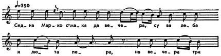 К 10–14 вв. относится появление эпич. песен с военно-героич. тематикой, на основе к-рых позднее (14–17 вв.) стал развиваться героич. эпос — «юнашки» — героические (молодецкие, богатырские) песни, воспевавшие подвиги короля Марко, Момчила и др. борцов за свободу народа. Эпич. песни отличаются реалистичностью образов и ярко выраженным нац. колоритом, носят речитативно-импровизац. характер, они строятся на двух и более попевках, варьируемых в зависимости от текста. В период османского владычества возросла роль нар. песни, поддерживавшей уверенность в победе и ставшей символом духовной независимости болг. народа. Она сохранила свой самобытный склад. Даже в песнях омусульманенных болгар (жителей Родопских гор) не видно следов влияния тур. музыки, оно ощущается в известной мере лишь в гор. песенном фольклоре.