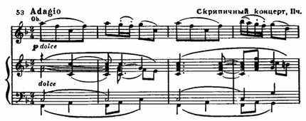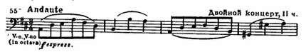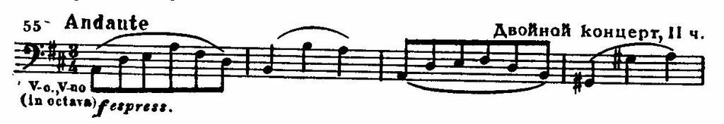 Глубоким, сосредоточенным настроением проникнута музыка второй части. Ее открывает простой напев гобоя (в партии солиста приведенная мелодия звучит в варьированном и неполном виде):