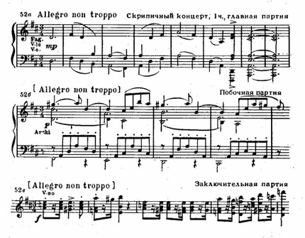 Несмотря на такую многосторонность содержания, первая часть облечена в строгую классическую сонатную форму, даже со старой структурой двойной экспозиции.