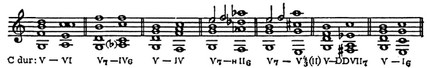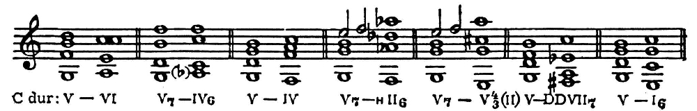 Начиная примерно с 17 в. каденционный оборот V–I (вместе с его «инверсией» IV–I) пронизывает собой не только заключение пьесы или её части, но и все её построения. Это обусловило новую структуру лада и гармонии (её иногда наз. каденционной гармонией — Kadenzharmonik).