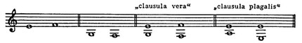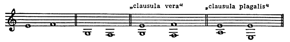 Гармонич. формулам-К. исторически предшествуют одноголосные мелодич. заключения (т. е. в сущности К.) в ладовой системе позднего средневековья и Возрождения (см. Средневековые лады), т. н. клаузулы (от лат. claudere — заключать). Клаузула охватывает звуки: антипенультим (antepaenultima; предшествующий предпоследнему), пенультим (paenultima; предпоследний) и ультим (ultima; последний); наиболее важны из них пенультим и ультим. Клаузула на финалисе (finalis) считалась совершенной К. (clausula perfecta), на всяком другом тоне — несовершенной (clausula imperfecta). Наиболее часто встречавшиеся клаузулы были классифицированы как «дискантовая» или сопрановая (VII–I), «альтовая» (V–V), «теноровая» (II–I), впрочем, не закреплявшиеся за соответствующими голосами, и с сер. 15 в. «басовая» (V–I). Обычное для старых ладов уклонение от вводнотонового шага VII–I дало т. н. «клаузулу Ландино» (или впоследствии «каденцию Ландино»; VII–VI-I). Одновременное сочетание этих (и сходных) мелодич. К. составило каденционные аккордовые последования: