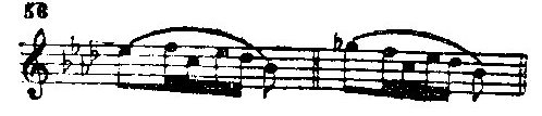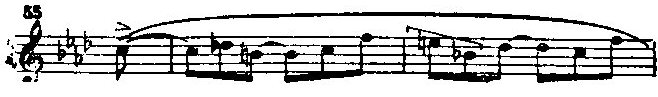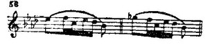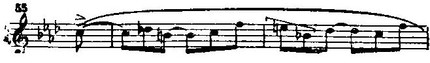 Отметим еще свойственные первой теме типично шопеновские мелодические обороты (Ср.: вальс ор. 69 № 2 (такты 3-4), ноктюрн ор. 27 № 1 (такт 19 от конца), соната ор. 58 (первая часть, такт 40), ноктюрн ор. 48 № 1 (такт 4), ноктюрн ор. 48 № 2 (такты 4-5), прелюдия ор. 28 № 16 (такт 18).):