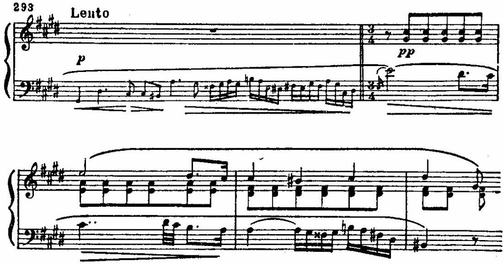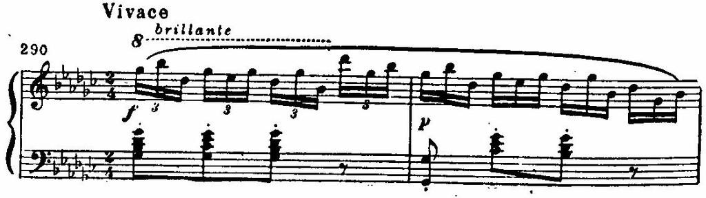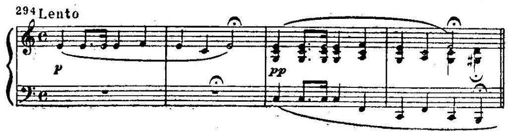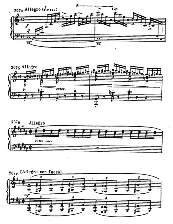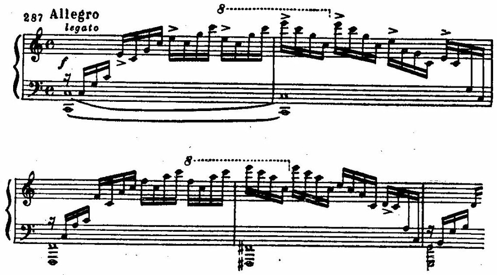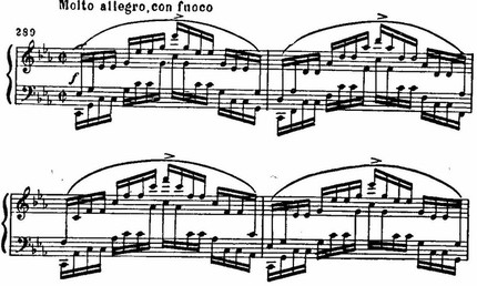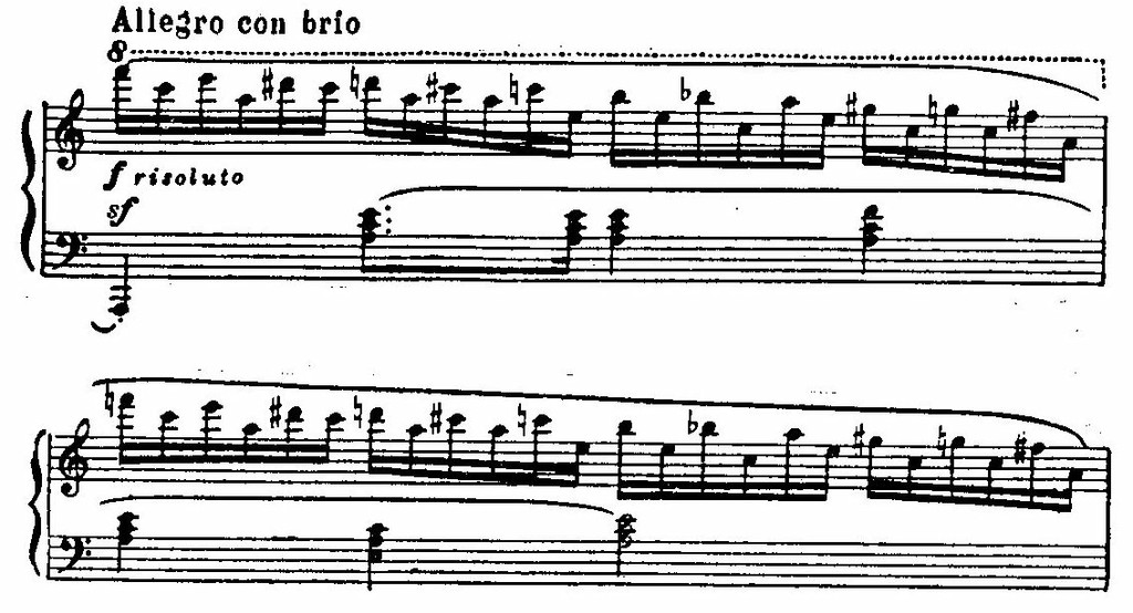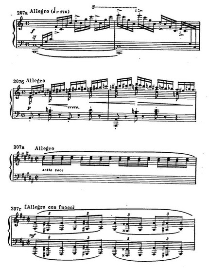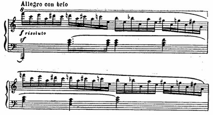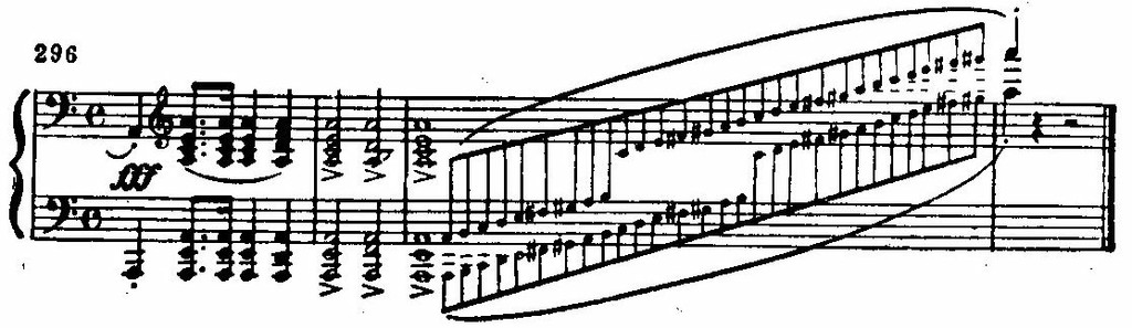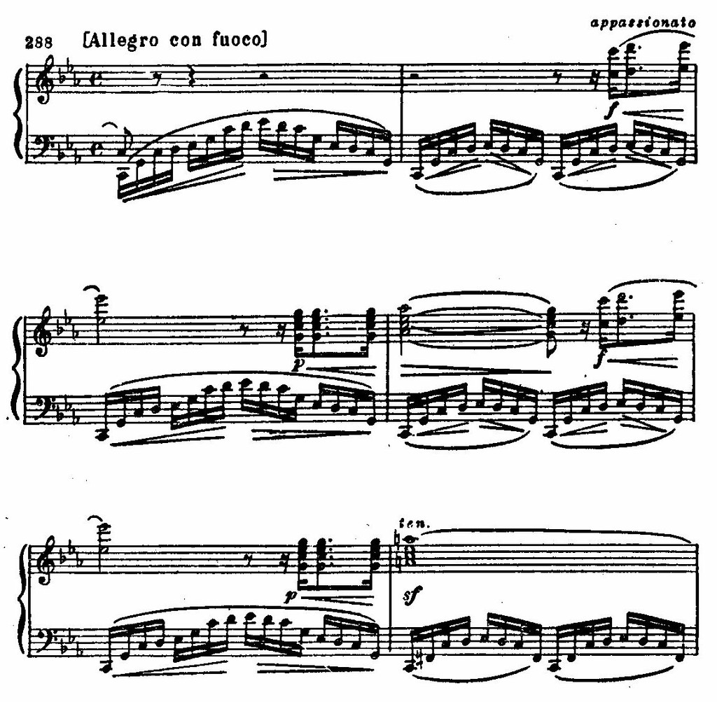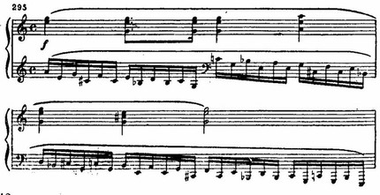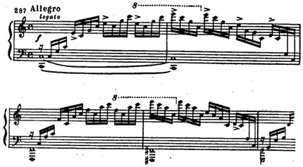 Его технический прием — разложенные аккорды, исполняемые на большом звуковом пространстве в быстром темпе обеими руками и в параллельном движении. Использован же этот прием для характеристики мрачно-трагического образа.