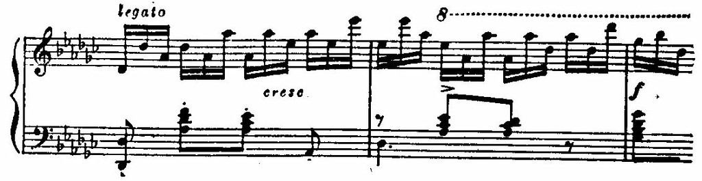 В As-dur’ном этюде глубоко и мягко дышит вся фактура, поет мелодия, поет гармония. Как хрупкие побеги, пробиваются время от времени подголоски, вкрапленные в нежные мелодические переливы. Пастельная изысканность звуковой палитры, несравненная поэтичность, источаемая каждой фразой, делает этот этюд шедевром фортепианной музыки:
