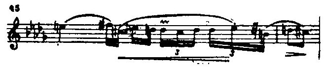 Отметим еще следующие детали: такты 49-52 — устойчивый доминантсептаккорд (вспомним ноктюрн ор. 9 № 1); такт 60 — квартовая мелодика; такты 16-14 от конца — весьма выразительные опадающие уменьшенные септаккорды на тоническом басу (вздохи тритонов в правой руке); такты 9, 7, 5 от конца — „фольклорное" наслоение доминанты и тоники.