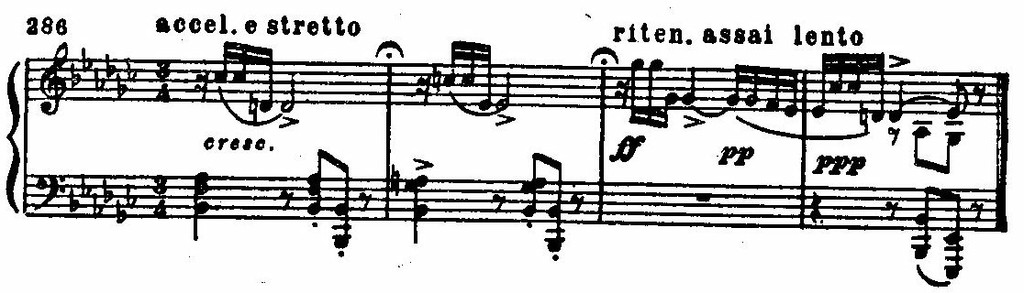 Однако тревожный драматизм репризы, точно воспроизводящей первое построение в es-moll, бросает трагический отсвет на описание этой картины.