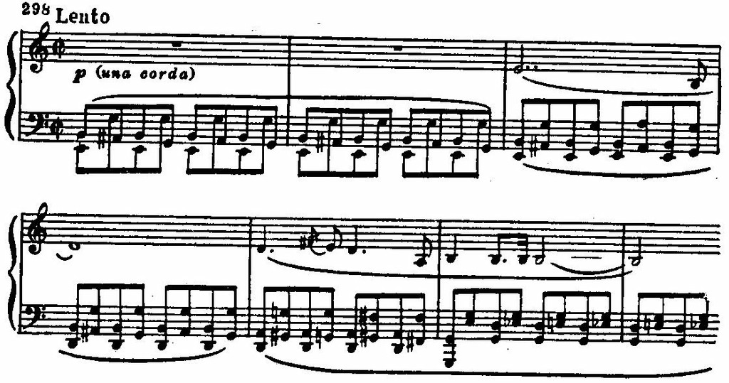 Набегающие тени, которые временами образуются в середине первой части (уход в минорную доминанту с VI пониженной ступенью в мелодии или отклонение в b-moll), не влияют существенно на общую светлую окраску первой части (прелюдия написана в сложной трехчастной форме).