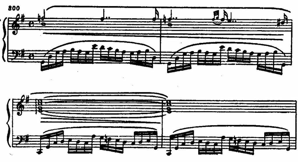 Стремительно падающие пассажи коды, переходящие в собранные и нисходящие по полутонам аккорды, сокрушительные удары баса на тоническом звуке в контроктаве довершают эту трагическую картину.