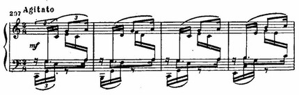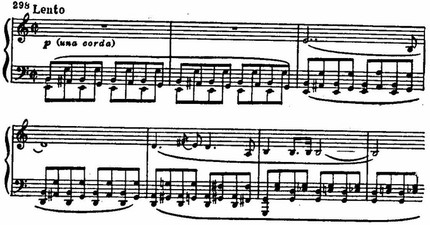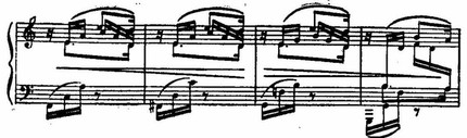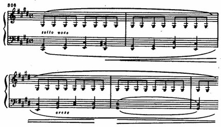 Такого рода задержания, так же как и призывные обороты, в музыке романтиков служат выражению чувства томления, лирического порыва. В различных контекстах и звуковых комбинациях ими пронизана ткань многих произведений Листа, Вагнера, Скрябина.