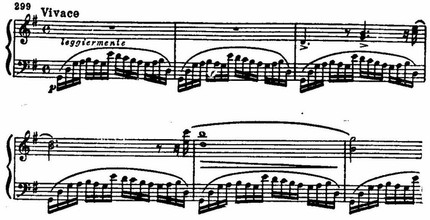 Изящная подвижность и шаловливо-капризные изгибы рисунка, быстрота и плавность звуковых переливов создают воздушный, как бы струящийся фон. Разреженность всей фактуры еще больше способствует прозрачной чистоте колорита: