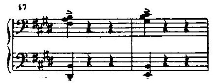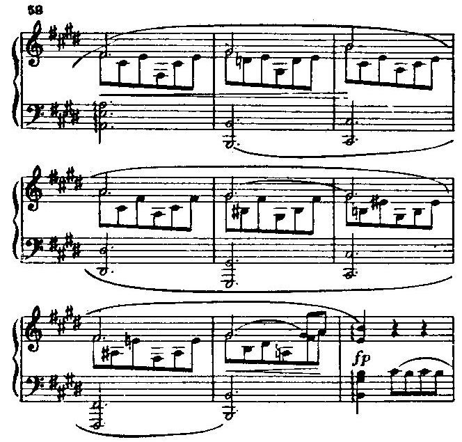 Такты 87-80 от конца скерцо — изумительный фрагмент: нежная сердечность, словно баюкающая красочность плагально-колеблющихся гармоний с колоритно-необычным движением доминантовой септимы в квинту тоники: