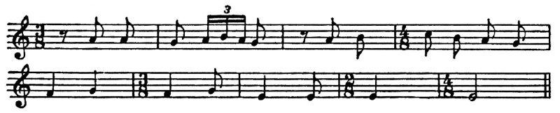 Для исполнения плясовых, а иногда и лирич. песен характерны вскрикивания и возгласы, часто заимствованные междометия: в Испании — «Оле!», «Лёли!» («Оле» — от Allah, перенято цыганами от арабо-испан. исполнителей); в Венгрии, на Балканах и в Молдавии, а также у трансильванских цыган — «Яй!», «Ха!», «Хэй!»; в России — «Ой», «Ай-да», «Ну!», « Н. э.- н. э.». Муз. строфа плясовых песен — обычно одно предложение (реже два), служащие и для запева, и для припева. Иногда (в более поздних песнях) образуется построение симметрич. типа из 4 фраз (напр., сэрвская песня «Розовое яблочко»).