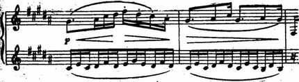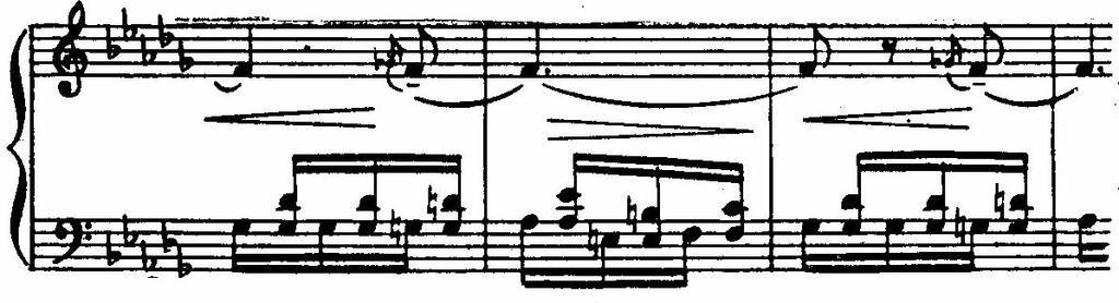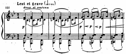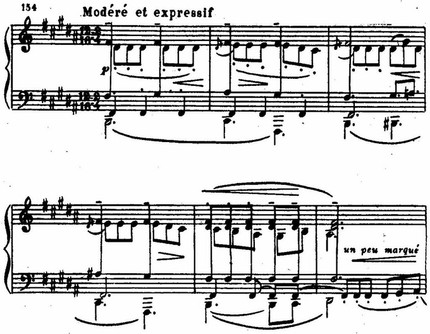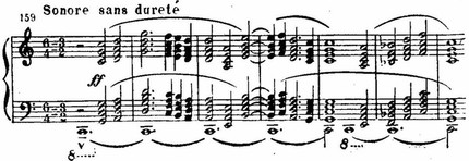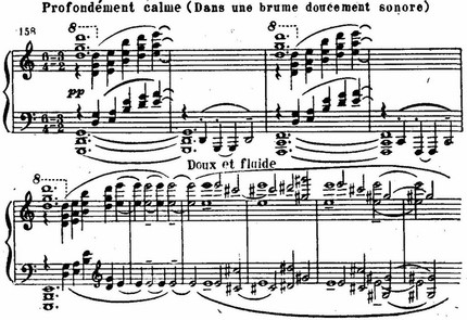 Это один из образцов развития и усложнения Дебюсси интонаций, имеющихся у его предшественников.