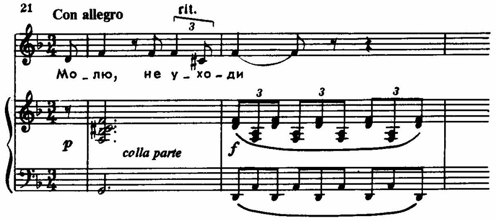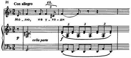 Возникающий при этом в мелодическом голосе ход на уменьшенную кварту вызывает щемящее скорбное чувство.