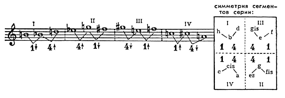 Структура серии (интервалы в полутонах, в каждой группе снизу вверх):