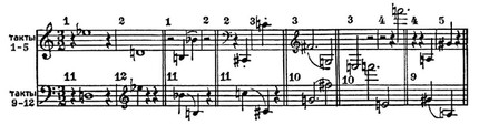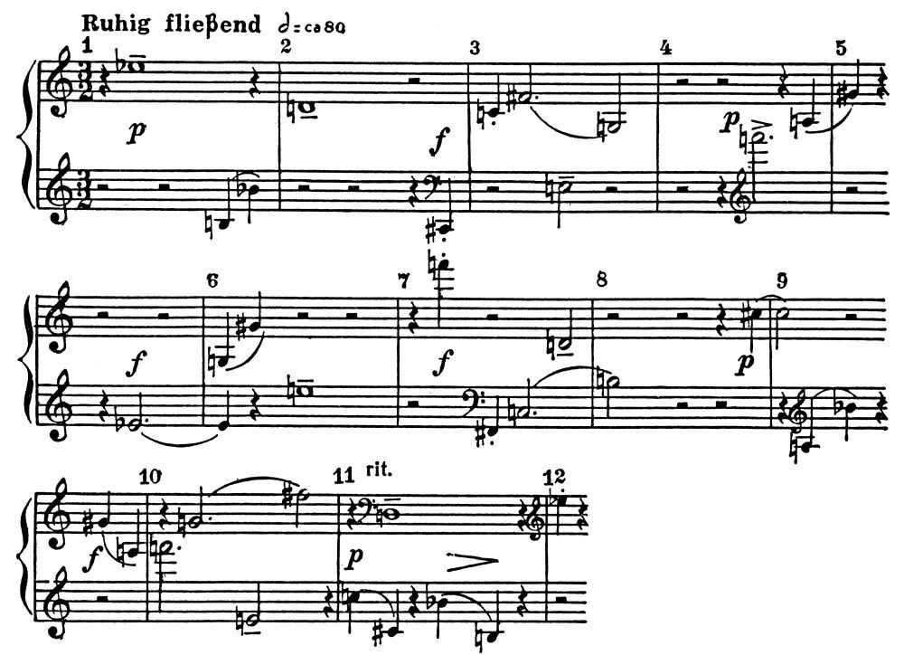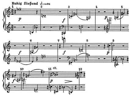 A. Bеберн. Вариации для фортепиано op. 27 (1936), часть III, такты 1—12.