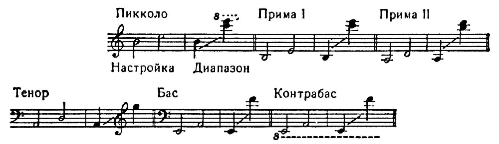 Настройка и диапазон оркестровой домбры