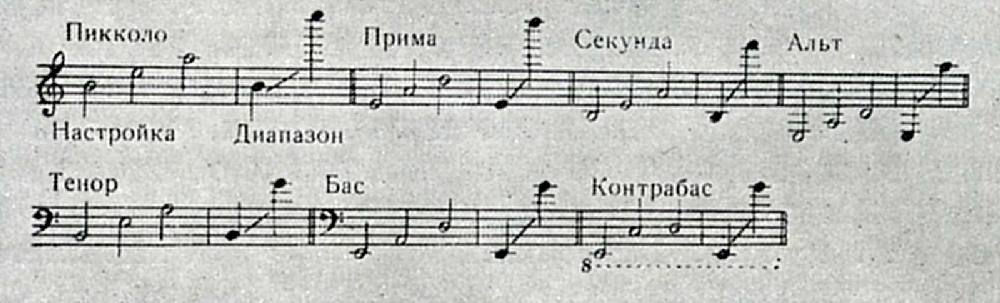 Настройка и диапазон оркестровой домры