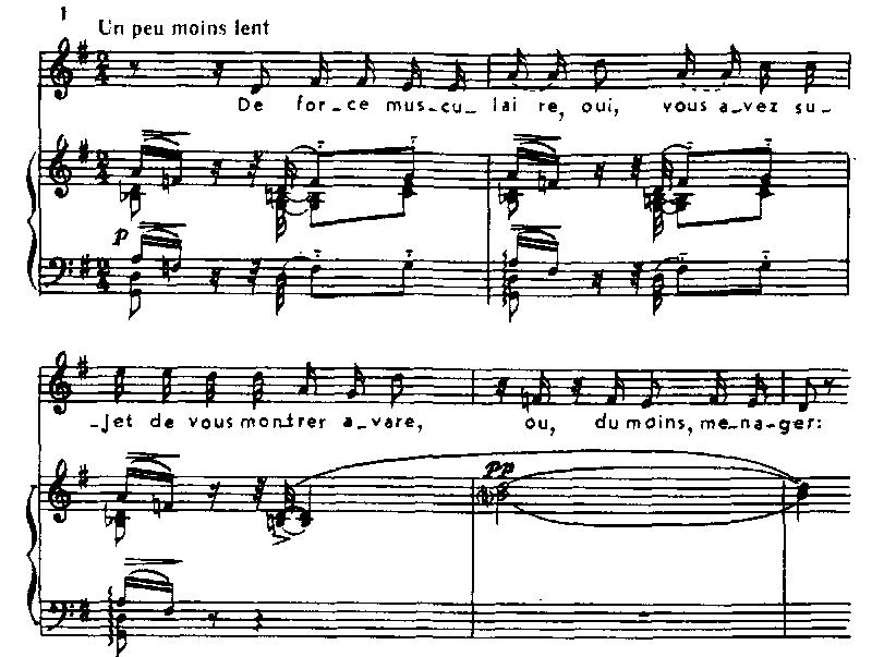 В общем, партитура Равеля являет пример синтеза музыкальной декламации и оркестровой ткани. Главное часто высказывается именно в последней, хотя, впрочем, композитор умеет уравновешивать это в других эпизодах. Возможно, что он стремился возместить некоторую монотонность речитатива изысканной разработкой партитуры. Давая простор своей оркестровой фантазии, он не забывает о требованиях жанра и музыкально-сценического развития.