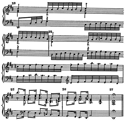 И. С. Бах. Фуга D-dur из 1-го тома «Хорошо темперированного клавира» (такты 23–27).