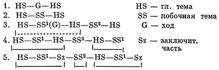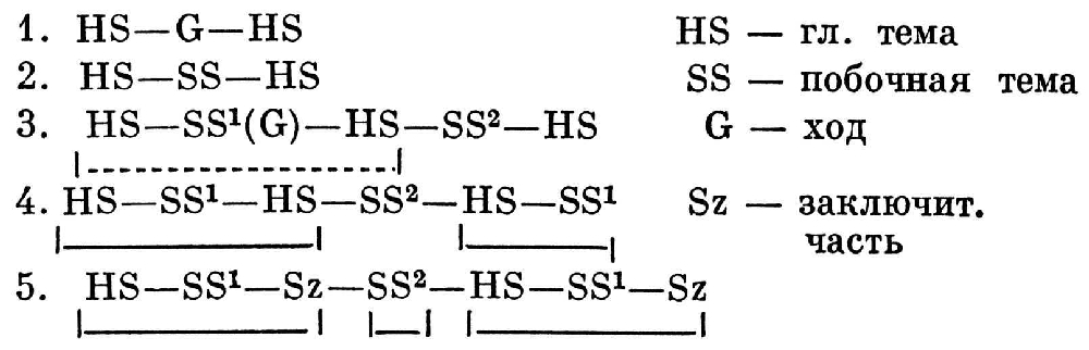 с тенденцией к неповторению тональностей между тоникой в начале и в конце, по принципу Т-D-S-Т.