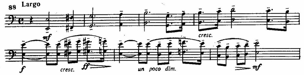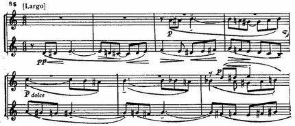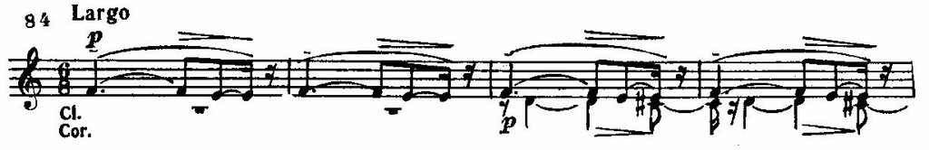 Как тихая, печальная жалоба звучат плавно нисходящие секвенции скрипок (а затем гобоя solo), построенные на той же фразе, в конце пролога.