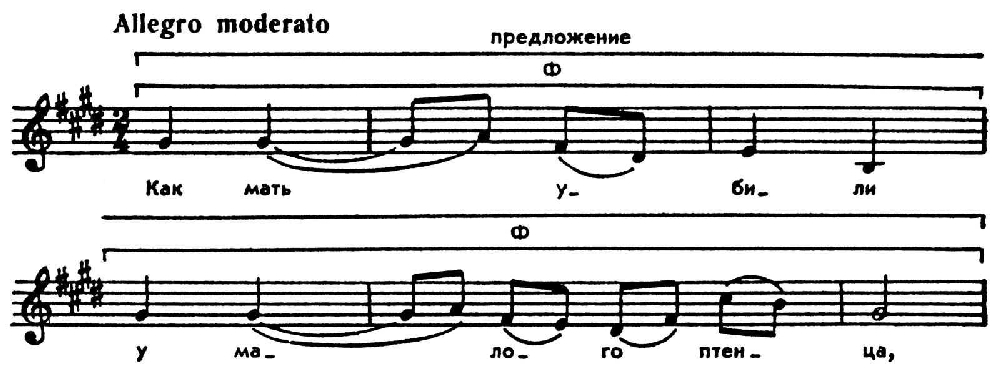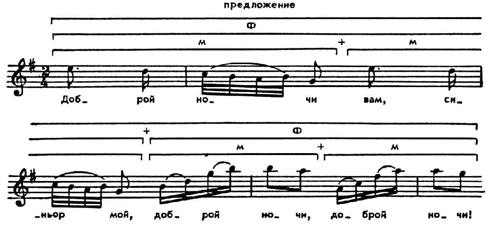 2) В учении о музыкальной форме — построение, занимающее промежуточное положение между мотивом и предложением.