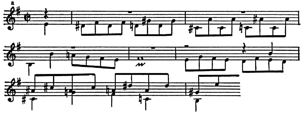 с) Б. Барток. Фуга из сонаты для скрипки соло, тема.