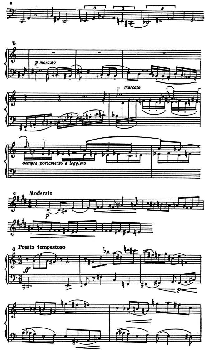 b) H. К. Метнер. Грозовая соната для фп. ор. 53 No 2, начало фуги.