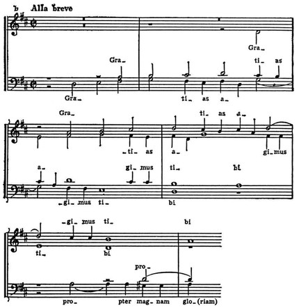 И. С. Бах. Mecca h-moll, No 6, «Gratias agimus tibi», начало (оркестровое сопровождение опущено).