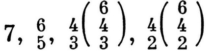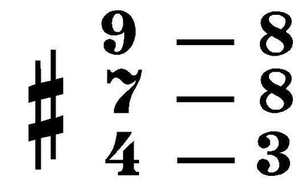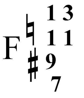 — диатонич. септаккорд и его обращения; 9 — нонаккорд. Терции обычно не обозначаются; знак альтерации (диез, бекар, бемоль) без цифры относится к терции; знак альтерации рядом с цифрой означает хроматич. видоизменение верхнего звука соответствующего интервала (от баса). Хроматич. повышение обозначается также перечеркиванием цифры или знаком + после неё — повышение сексты, 4+ — повышение кварты). Цифрами от баса обозначаются и неаккордовые звуки (4 — трезвучие с нисходящим задержанием к терции,