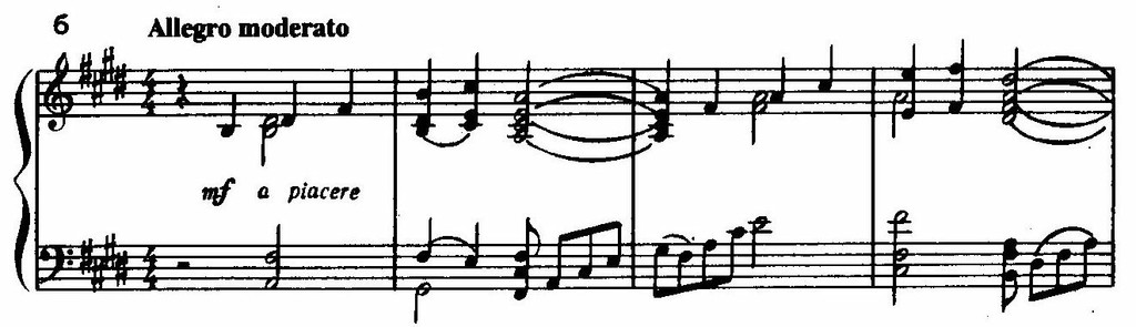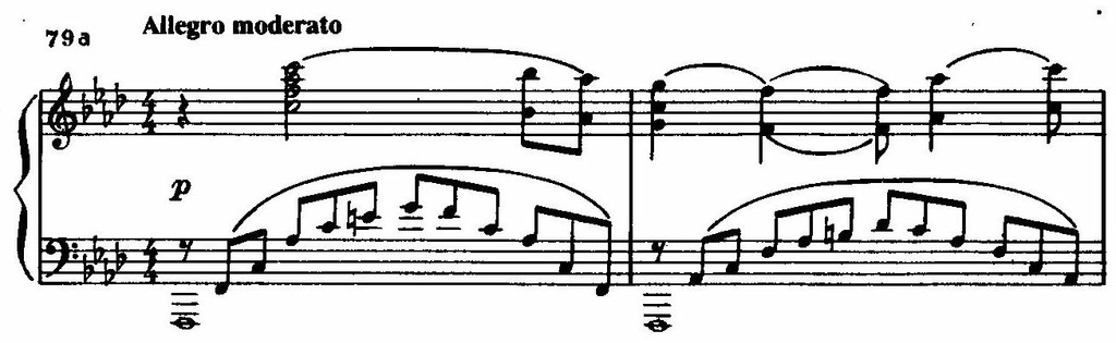 Обе темы первой части двухчастного фортепианного концерта приблизительно так же соотносятся между собой, как в скрипичном: взволнованной лирико-патетической теме главной партии противопоставлена более спокойная светлая тема побочной.