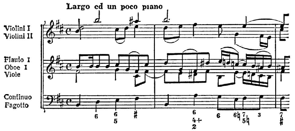 Если же муз. мысль распределяется между несколькими голосами — это полифония (даже при гомофонном аккомпанементе, как это встречается, напр., у Баха; см. нотный пример).