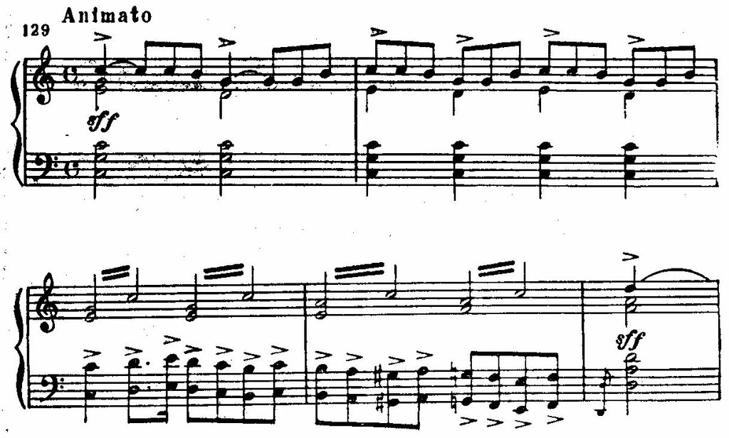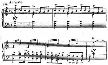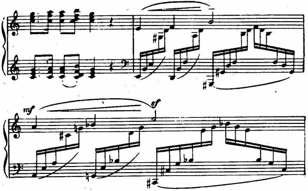 Острота ритма и жесткие секундовые созвучия соответствуют звучанию подобной музыки в практике народных музыкантов.