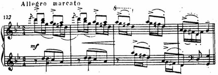 Этот халлинг играет самостоятельную роль в ряду образов первой части, и лишь последующее за ним мелодическое построение на длительном доминантовом басу, с красочными гармониями (в их числе любимый Григом большой нонаккорд), является собственно связующим.