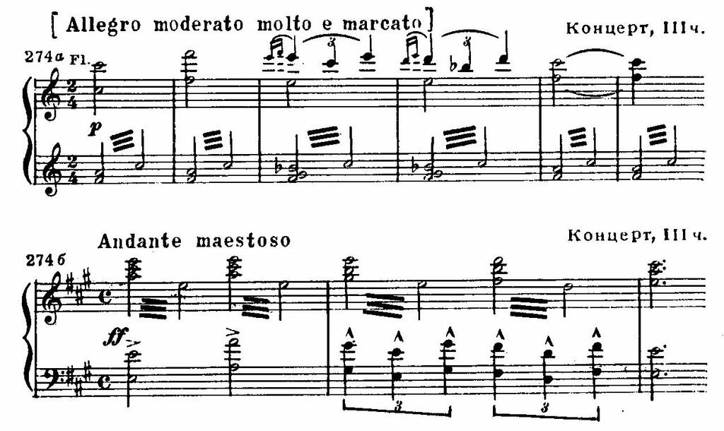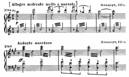 Вторая часть — чудесный певучий ноктюрн с внезапно возникающими народно-танцевальными оборотами.
