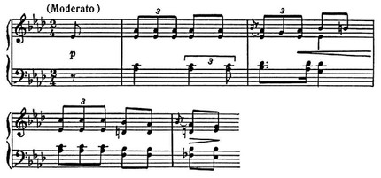 , что придаёт ей особую гибкость и создаёт биритмич. эффект: пять длительностей в мелодии и четыре в аккомпанементе на каждый такт. Первые образцы X. встречаются среди фп. контрдансов М. Саумеля Робредо; так, его контрданс «Красивая девочка» («La niсa bonita») представляет собой типичную X.:
