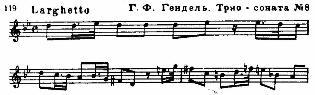Одна — это юношеские сочинения, где индивидуальность композитора еще не определилась; мы не будем их перечислять здесь. Заметим лишь, что еще с отроческих лет Гендель проявлял интерес к духовым инструментам. Мы уже встречаем здесь сонаты для двух гобоев и continuo, для флейты и continuo.