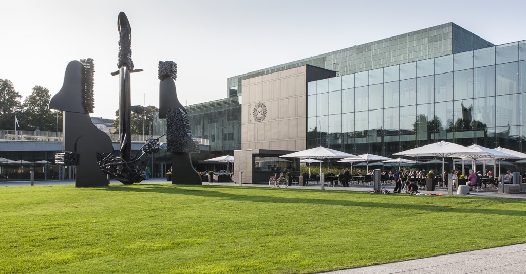 Огромный комплекс с самого начала задумывался как многофункциональный. В просторных светлых фойе будут проводить временные выставки. В разных частях здания обретут свой дом два ведущих городских оркестра — Филармонии Хельсинки и Оркестра финского радио. В продольном корпусе разместятся классы и учебные аудитории Академии Сибелиуса: места хватит всем.
