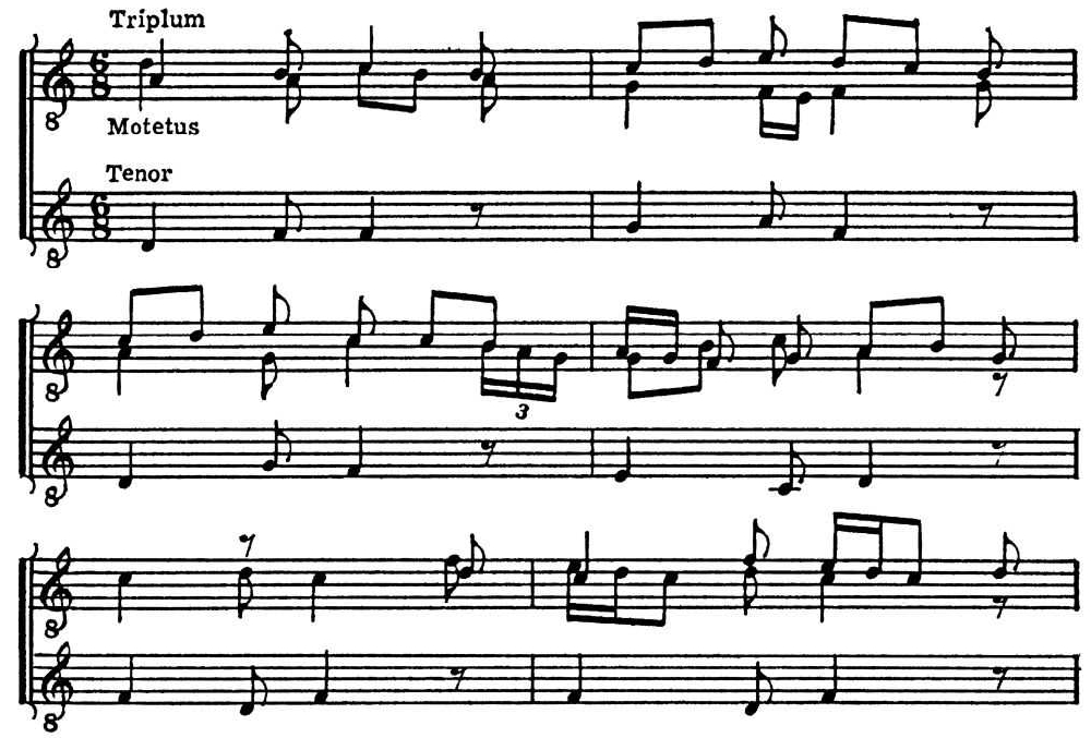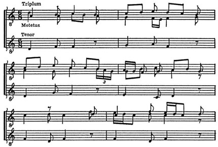Мотет. Парижская школа (13 в.). Отрывок хорала проходит в теноре.