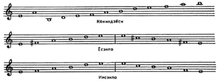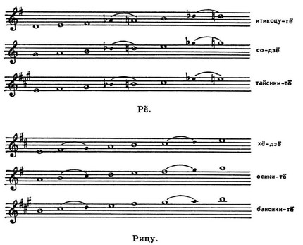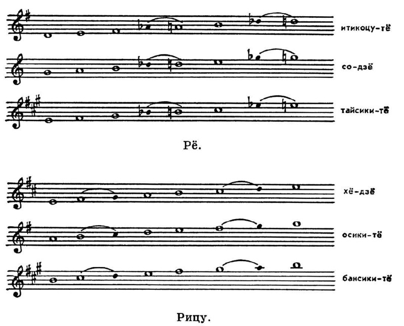 Образцы звукорядов ладотональной организации гагаку, но рокутёси.