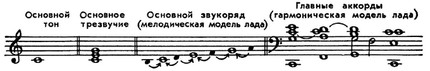 (как трезвучие, совпадающее с 4-м, 5-м и 6-м тонами натурального звукоряда, и как лад, построенный на его основе) имеет светлую окраску звучания, противоположную окраске минора, что составляет один из наиболее важных эстетич. контрастов в музыке. М. (собственно «мажорность») может пониматься в расширительном смысле — не как лад определённой структуры, а как ладовая окраска, обусловливаемая наличием звука, отстоящего на большую терцию вверх от осн. тона лада. С этой точки зрения качество мажорности свойственно ещё большой группе ладов: натуральным ионийскому, лидийскому, некоторым пентатонным (c-d-e-g-a), доминантовому и др.