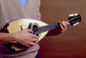 Мандолина (итал. mandolino) — струнный щипковый музыкальный инструмент лютневого семейства. Возник в Италии. В своём окончат. виде сложился к 17 в. С 18 в. один из наиболее распространённых итал. нар. инструментов. Бытовало неск. типов М., различающихся по строю, форме корпуса и шейки, числу струн. Так, флорентийская М. имела 5, генуэзская 5–6, падуанская 5, неаполитанская 4 парные струны. Наиболее популярна неаполитанская М. Её корпус выпуклый, овальный, клеёный из отд. сегментов, шейка короткая, гриф с металлич. врезными ладами, головка плоская с механич. колками. Строй квинтовый, как у скрипки: g, d1, a1, e2 (парные струны настраиваются в унисон). Звук чистый, яркий и звонкий, извлекается плектром (медиатором) из черепашьего панциря или целлулоида. Возможно исполнение аккордов. Ноты пишутся в скрипич. ключе соответственно действительному звучанию. Применяется как сольный, ансамблевый и оркестровый инструмент.