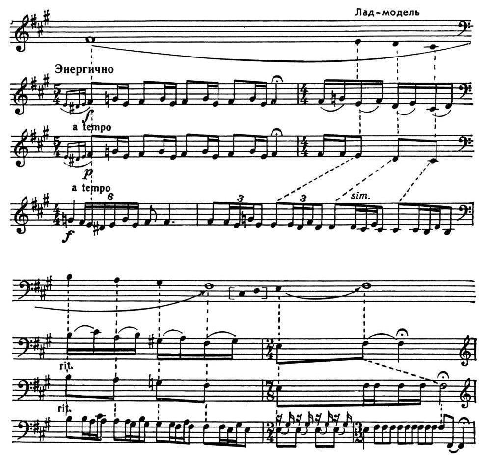 3) ладовая организация ритмизуемой линии (в виде богато выработанной системы тонально-функциональных связей; также на всех уровнях муз. целого).