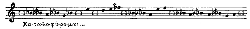 Мелодика античности базируется на богатейшей ладо-интонационной культуре, своей интервальной дифференцированностью превосходящей мелодику позднейшей европ. музыки. Помимо существующих и поныне двух измерений высотной системы — лада и тональности, в античности существовало ещё одно, выражающееся понятием рода (genos). Три рода (диатонический, хроматический и энармонический) с их разновидностями давали множество возможностей для заполнения мобильными тонами (греч. kinoumenoi) пространства между стабильными (estotes) краевыми тонами тетрахорда (образующими «симфонию» чистой кварты), в том числе (наряду с диатонич. звуками) и звуками в микроинтервалах — 1/3,3/8, 1/4 тона и т. п. Пример М. (отрывок) энармонич. рода (перечёркнутый обозначает понижение на 1/4 тона):